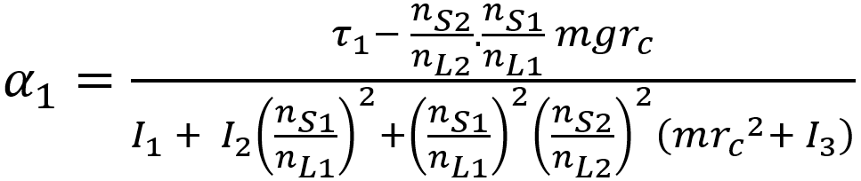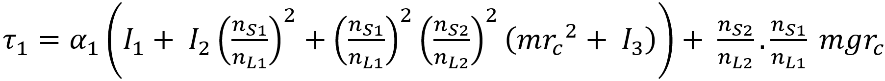 The following equation was derrived to represent the crane's gear setup for the force or torque provided by the quarryman. From this, I can then derive the angular acceleration of the handle axis. Using this, I would be able to edit my handle-axis Python script to work out the handle acceleration from defined and supplied values and apply the correct amount of rotation every second or even frame (30th of a second) for the most accuracy. As all the gear speeds are purely dependent on the handle speed, I would have to make few or no changes to my other scripts.
