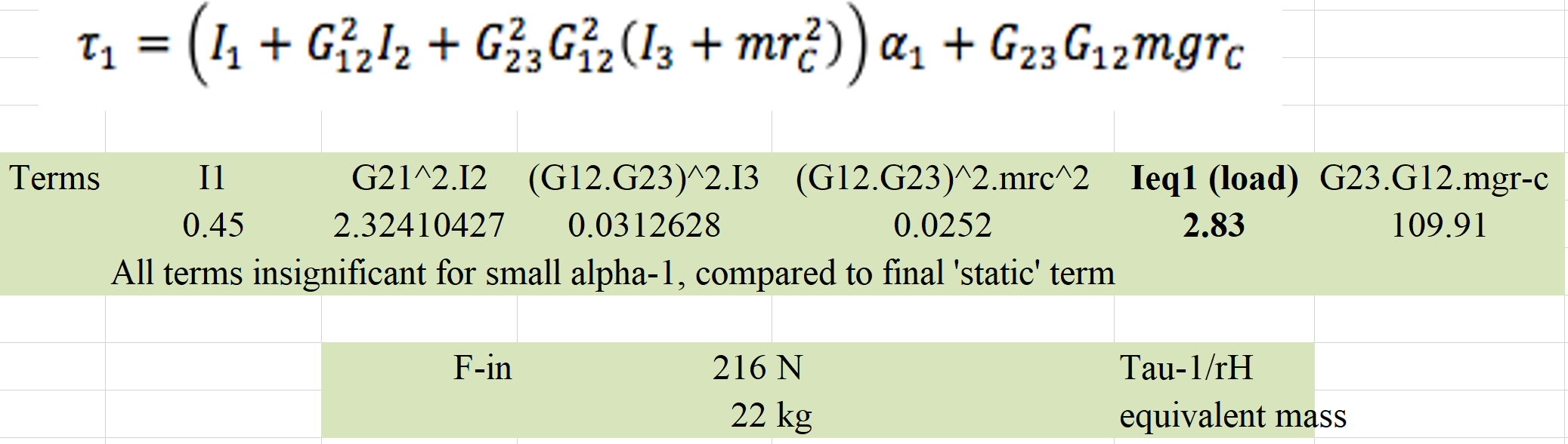 The following equation was derrived to represent the crane's gear setup for the force or torque provided by the quarryman. From this, I can then derive the angular acceleration of the handle axis. Using this, I would be able to edit my handle-axis Python script to work out the handle acceleration from defined and supplied values and apply the correct amount of rotation every second or even frame (30th of a second) for the most accuracy. As all the gear speeds are purely dependent on the handle speed, I would have to make few or no changes to my other scripts.